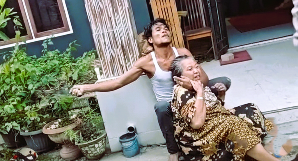 Dalam kondisi panik dan terdesak karena tidak menemukan jalan keluar, pelaku berlari masuk ke sebuah rumah warga dan menangkap seorang wanita lansia. Dengan mata gelap, pelaku menempelkan parang ke leher korban sebagai tameng agar warga tidak mendekat.